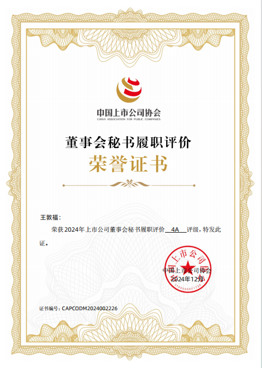 江(jiang)南(nan)化工(gong)獲2024年(nian)上市(shi)公(gōng)司董事會秘書咊(he)董事會辦(bàn)公(gōng)室榮譽