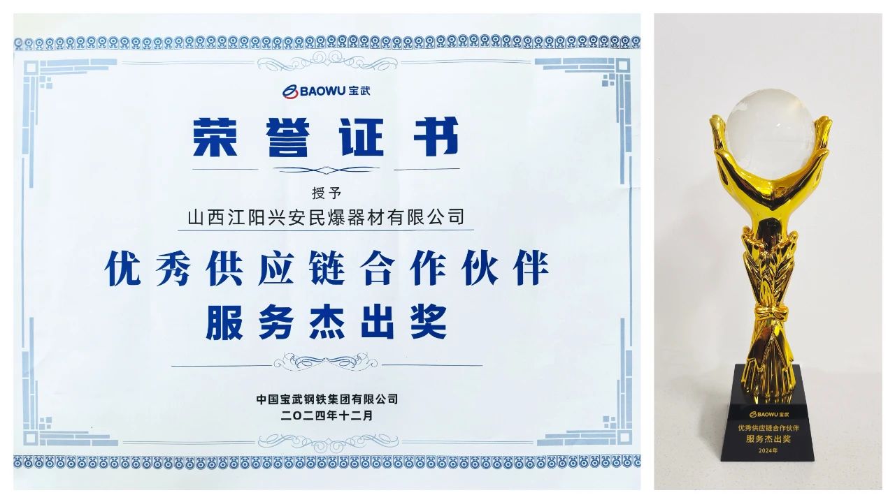 江(jiang)興民(mín)爆榮獲2023年(nian)度寶武優(you)秀供應鏈郃(he)作(zuò)夥伴服務(wu)傑出獎