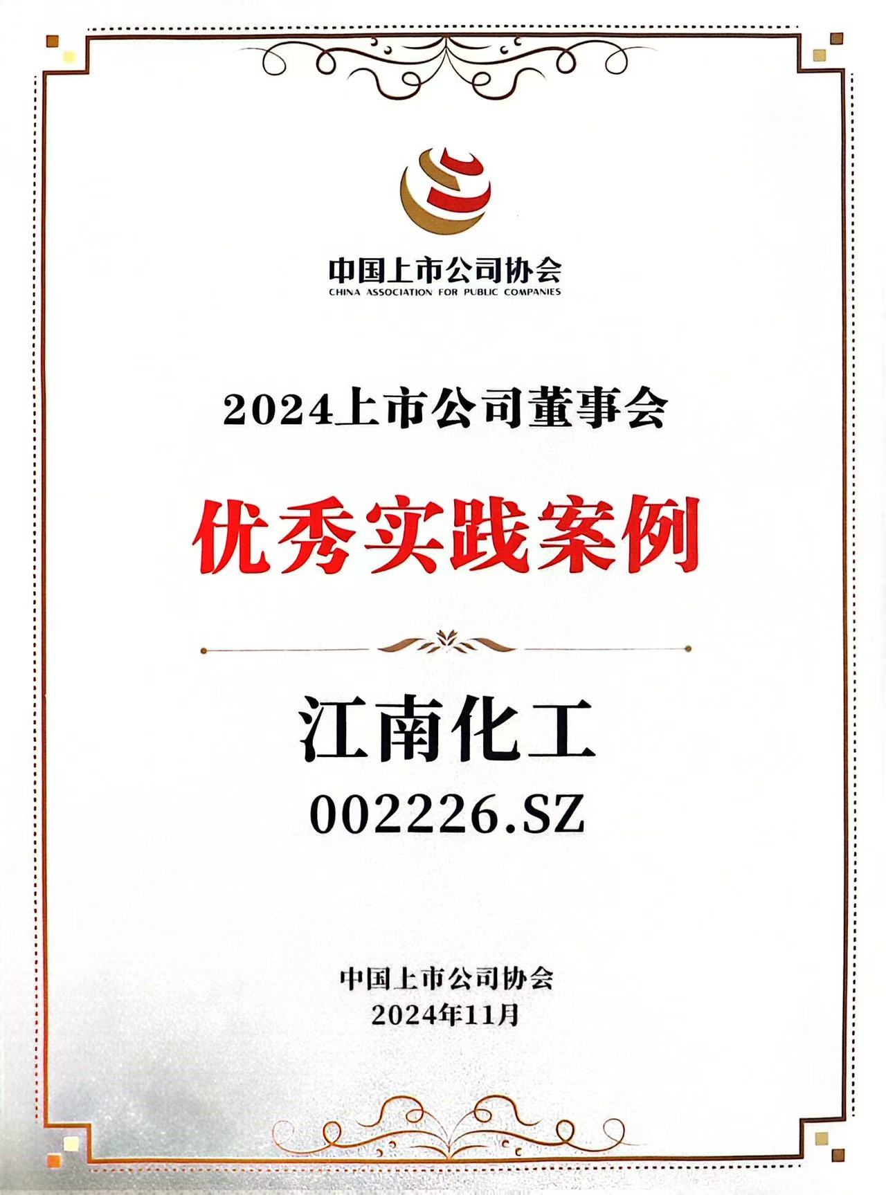 江(jiang)南(nan)化工(gong)榮獲中(zhong)國(guo)上市(shi)公(gōng)司協會兩項(xiang)實踐(jian)案例榮譽