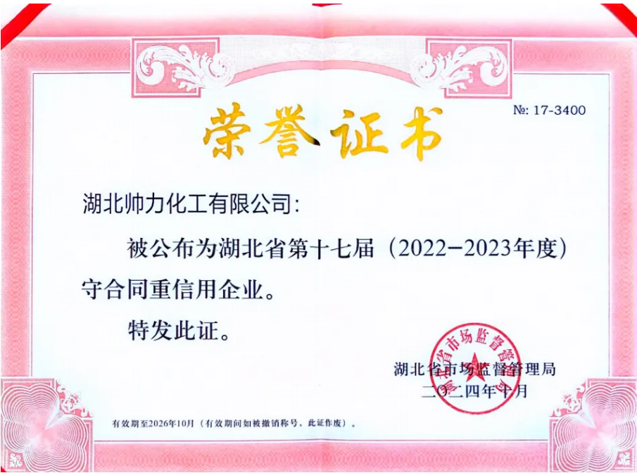 奮鬥江(jiang)南(nan)丨湖(hú)北帥力(li)再次獲評省級“守(shou)郃(he)同重(zhong)信(xin)用(yong)”齊(qi)業